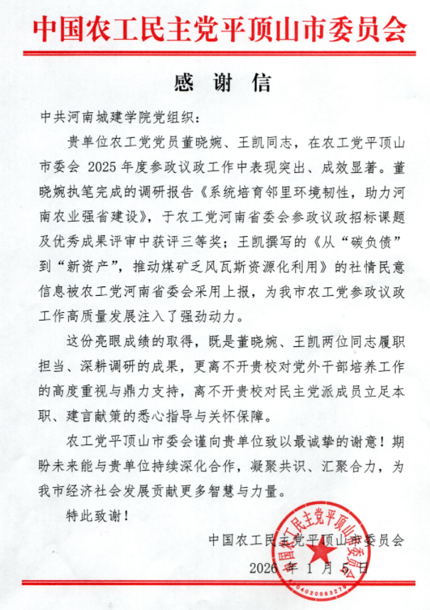 在刚刚结束的农工党河南省委会参政议政招标课题及优秀成果评审中,城市规划与建筑设计学院农工党党员董晓婉执笔完成的调研报告《系统培育邻里环境韧性,助力河南农业强省建设》,凭借其扎实的调研基础、前瞻性的视角和切实可行的对策建议,从众多参评成果中脱颖而出,荣获三等奖。
