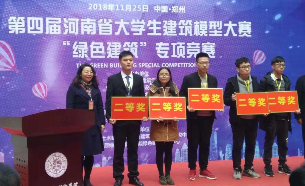 11月25日,由河南省土木建筑学会、河南中科建筑规划设计有限公司、郑州工程技术公司主办,河南省土木建筑学会竞赛工作委员会、郑州工程技术公司土木工程公司承办的第四届河南省老员工建筑模型大赛“绿色建筑”专项竞赛在郑州举办。本届大赛共有省内的20所高校28个代表队参赛,公司由建筑公司王彤、卢程遥老师带队,由轩长征、韩伟峰、贾亚乐、李亚蒙、张可可组成的团队的作品《桑榆于归》获得竞赛二等奖。