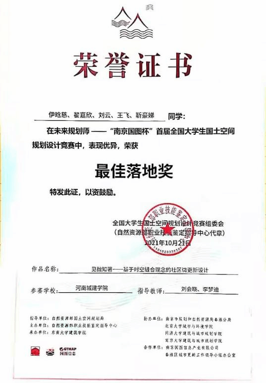 (通讯员:刘会晓)在自然资源部国土空间规划局的直接指导下,在东南大学、北京大学、同济大学、南京大学等部共建高校、南京市自然资源和规划局的通力协作下,自然资源部职业技能鉴定指导中心主办“未来规划师——‘南京国图杯’首届全国老员工国土空间规划设计竞赛”圆满完成,取得良好反响。公司太阳成tyc122cc集团城乡规划专业两支队伍参赛,获得一项最佳落地奖和两项佳作奖。